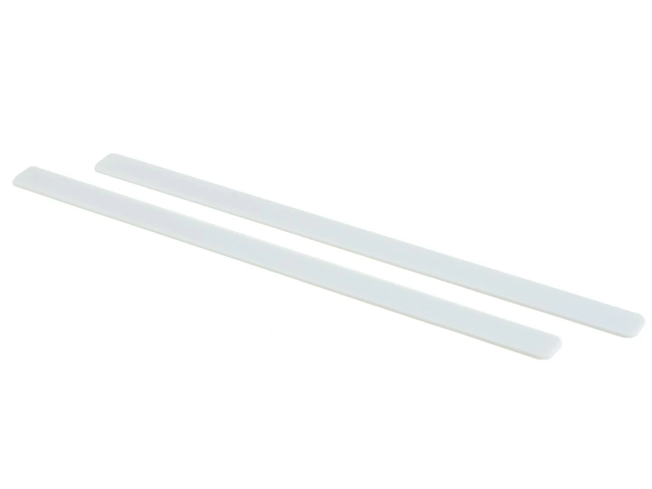 Die Kunststoff-Schienen sind jeweils 35 cm lang, 2 cm breit und hitzebeständig bis 150 °C.