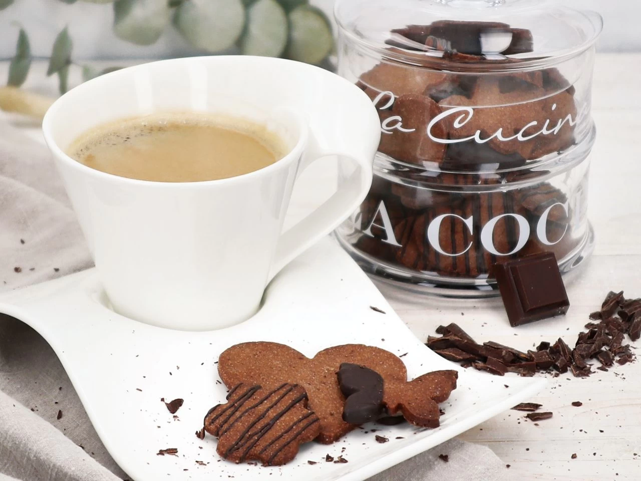 Sie geben der Fertigmischung für Schokoplätzchen lediglich zimmerwarme Butter sowie ein Ei hinzu und benötigen gegebenenfalls etwas Mehl zum Ausrollen des Plätzchenteigs.