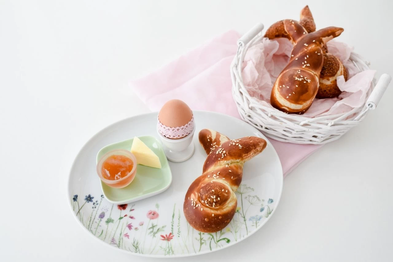 Alle Zutaten mindestens 10 Minuten miteinander verkneten. 10 Kugeln formen (je 80 – 90 g) und anschließend zu ovalen Rollen ausrollen. Die ovalen Rollen von innen nach außen zu einem mindestens 60 cm langen Strang ausrollen. Dieser sollte in der Mitte dicker und zu den Enden hin dünner sein. Daraus eine Brezel formen. Die Brezeln auf ein, mit Backpapier ausgelegtes, Backblech legen und 30 Minuten aufgehen lassen.