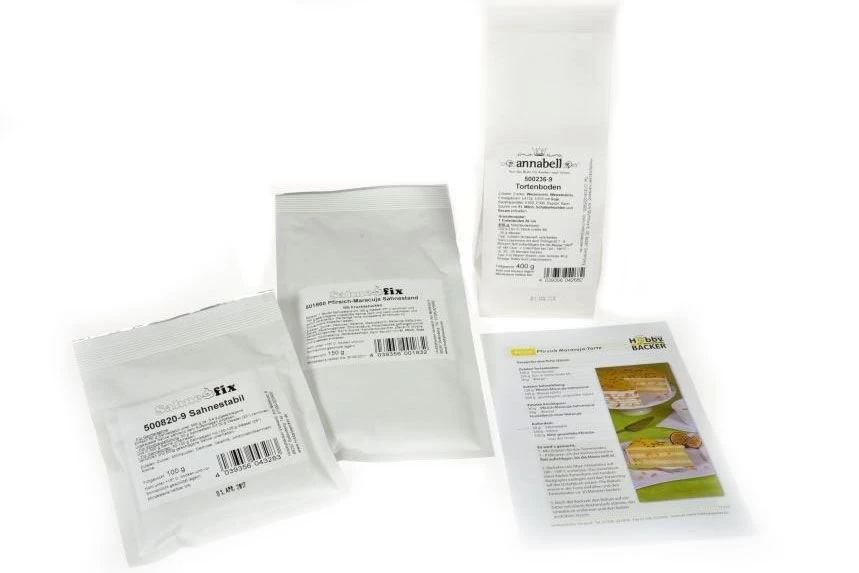 Ein tolles Backset mit leckeren Zutaten für eine erfrischende Sommertorte. Dieses Set enthält fast alles, was Sie brauchen. Nur noch Eier, Sahne, Dosenpfirsiche und für die Dekoration eine frische Maracuja und gehobelte Mandeln besorgen und schon kann es los gehen. Ein detailliertes Rezept mit hilfreichen Tipps und Tricks zur Zubereitung liegt selbstverständlich bei. Der Setinhalt reicht für eine Torte mit einem Durchmesser von 26 cm.