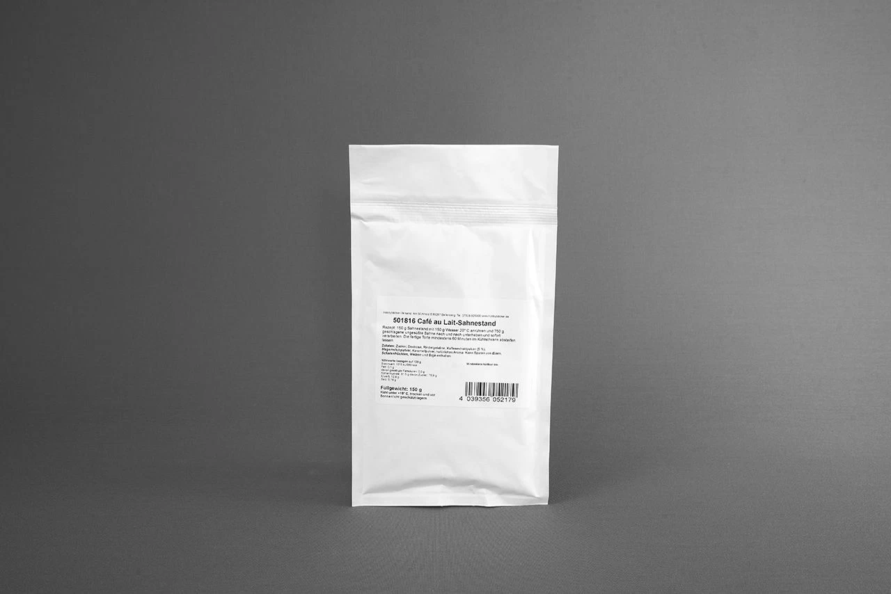 Wer gerne Milchkaffee trinkt, wird auch von diesem Sahnestand begeistert sein. Eine Sahnetorte mit feiner, kaffeetypischer Röstnote und dem unverlgeichbaren Geschmack des französischen Café au Lait, ist ein Gaumenschmaus der Extraklasse. Inhalt ausreichend für eine Torte oder zwei Rouladen. Preise gelten jeweils für einen Beutel.