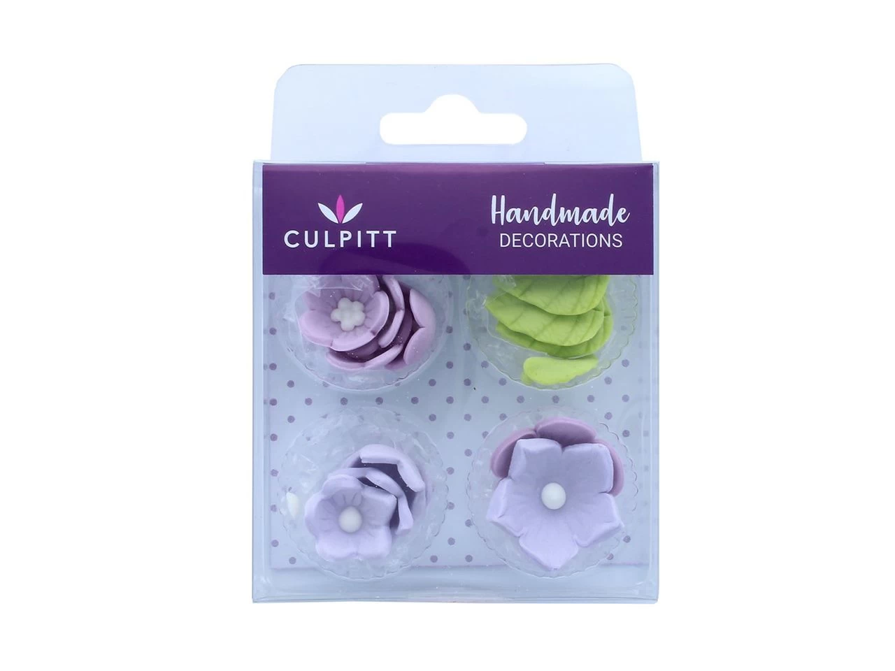 Culpitt: Zuckerdekor Blumen & Blätter Violett, Violett, Lila & Grün, 15-25 Mm, 16 Stück