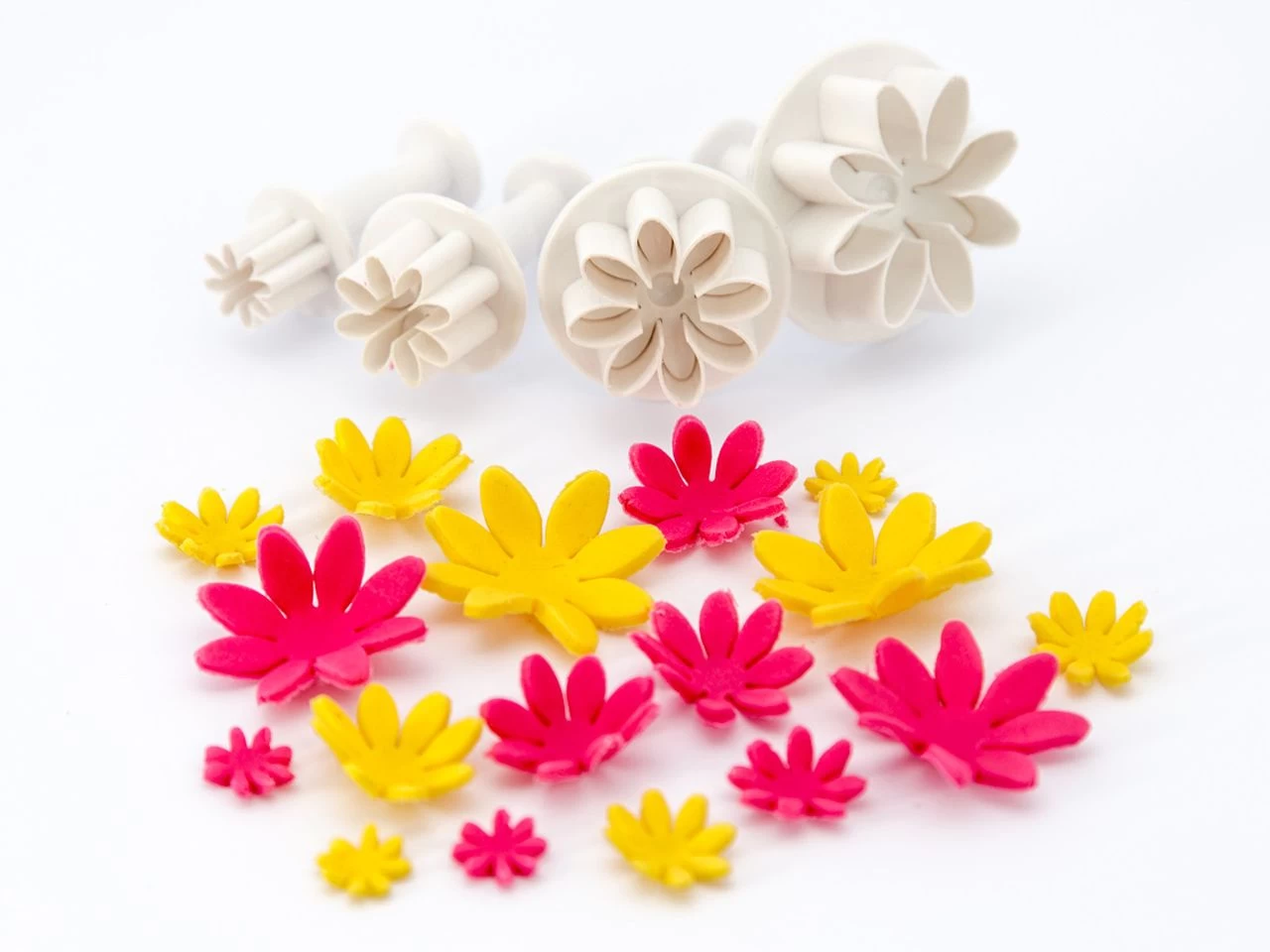 DEKOFEE Ausstecher-Set Mit Stempel: Gänseblümchen, Kunststoff, Weiß, 4 Stück á 21, 27, 35, 43 Mm