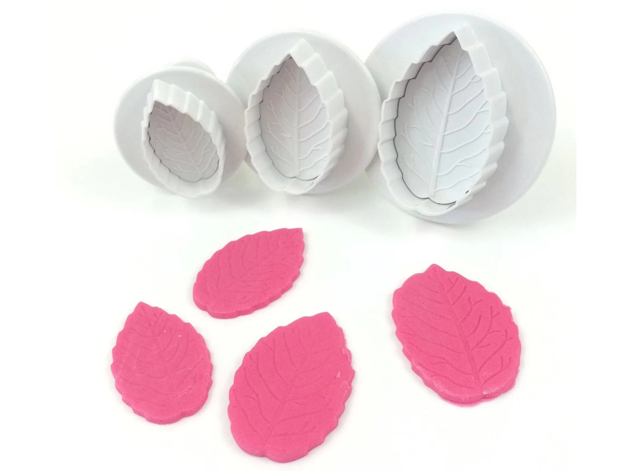 DEKOFEE Ausstecher-Set Mit Stempel: Rosenblätter, Kunststoff, Weiß, 3 Größen