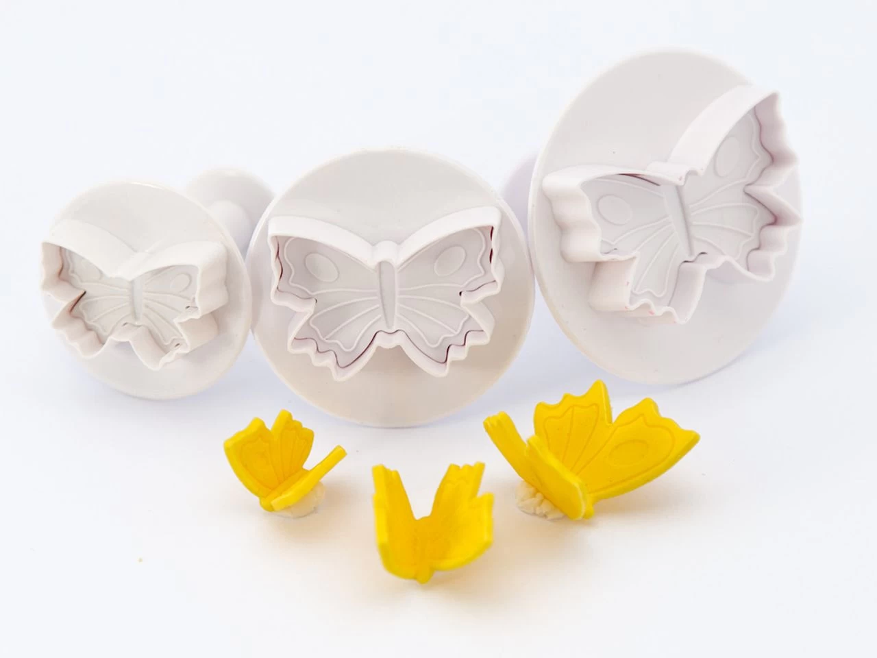 DEKOFEE Ausstecher-Set Mit Stempel: Schmetterlinge, Kunststoff, Weiß, 3 Stück á 40, 50, 60 Mm