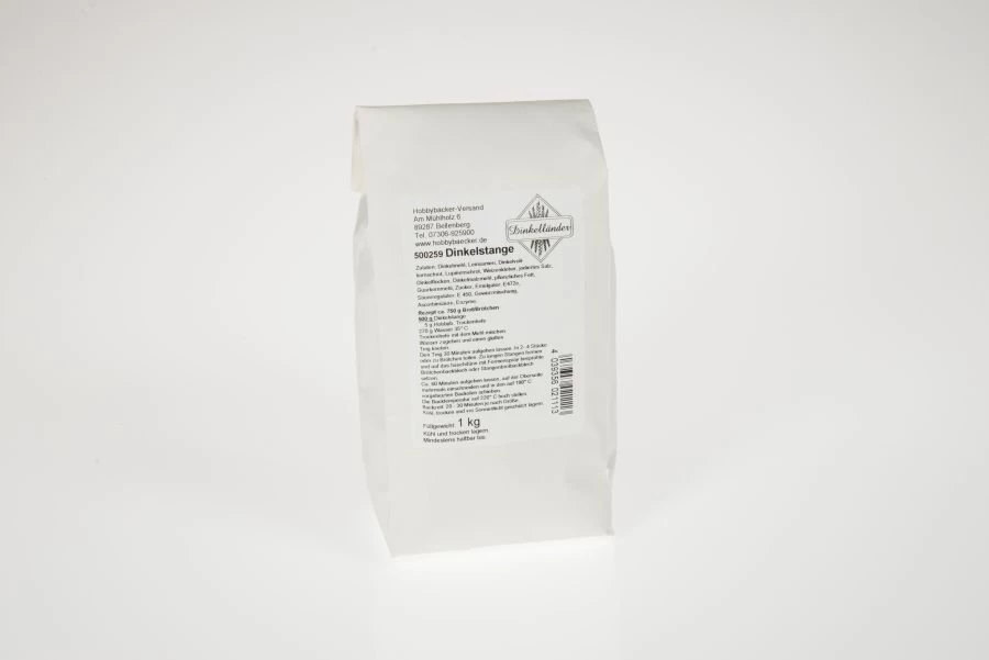 Sämtliche Gertreideerzeugnisse in unserer ausgesuchten Dinkelstangen-Backmischung bestehen zu 100 % aus bestem Dinkel. Das macht den besonders vollmundigen Geschmack dieses köstlichen Brotes aus. Verwöhnen Sie sich und Ihre Familie mit dieser Köstlichkeit!
