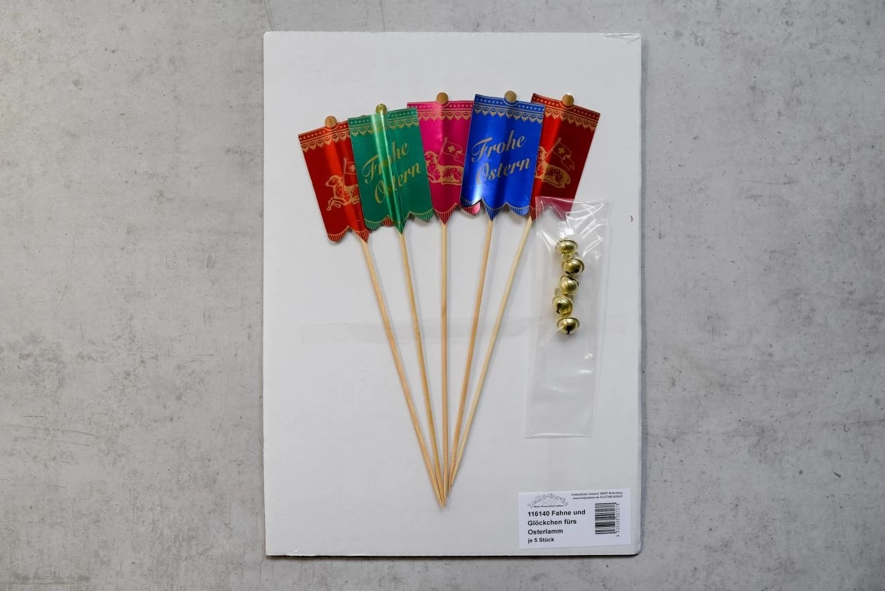 Mit Fahne und Glöckchen geben Sie Ihrem liebevoll gebackenen Osterlamm den letzten Schliff. So kann es sich in Ihrem Osterkörbchen sehen lassen.