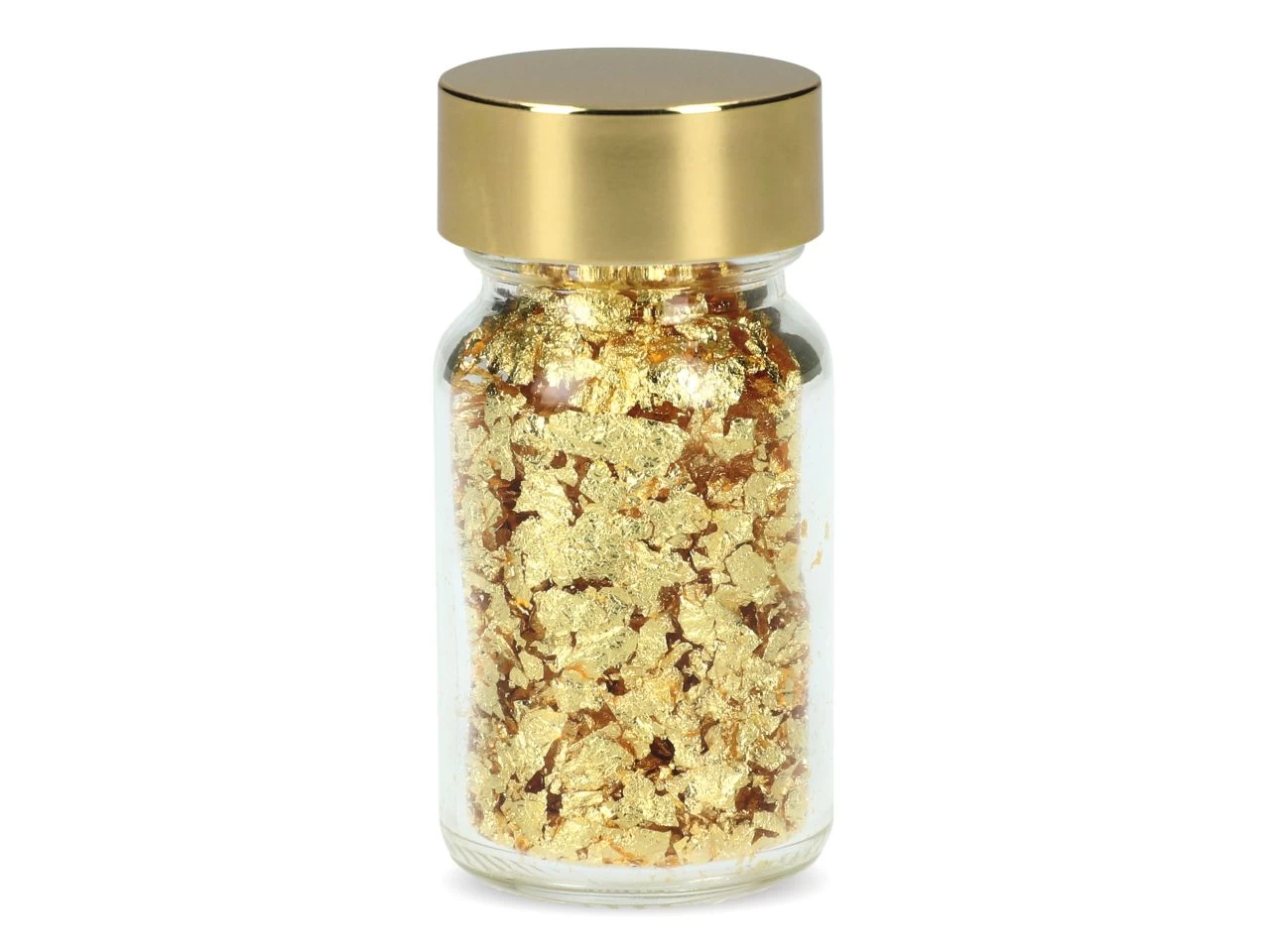Wer kann schon dem Zauber von echtem Gold widerstehen? Dekorieren Sie Torten, Kuchen oder Pralinen mit diesen 24-karätigen Goldflocken, und Ihre Gäste werden verblüfft sein. Inhalt: 0,10 g.