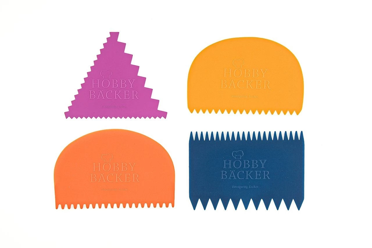 Das 4-teilige Kammschaber-Set ist Ihre Allzweckwaffe für exakte Randgarnierungen. Die Schaber aus elfenbeinfarbenem Kunststoff verfügen über unterschiedlich gezackte Kanten – da bleiben keine Dekorwünsche offen.