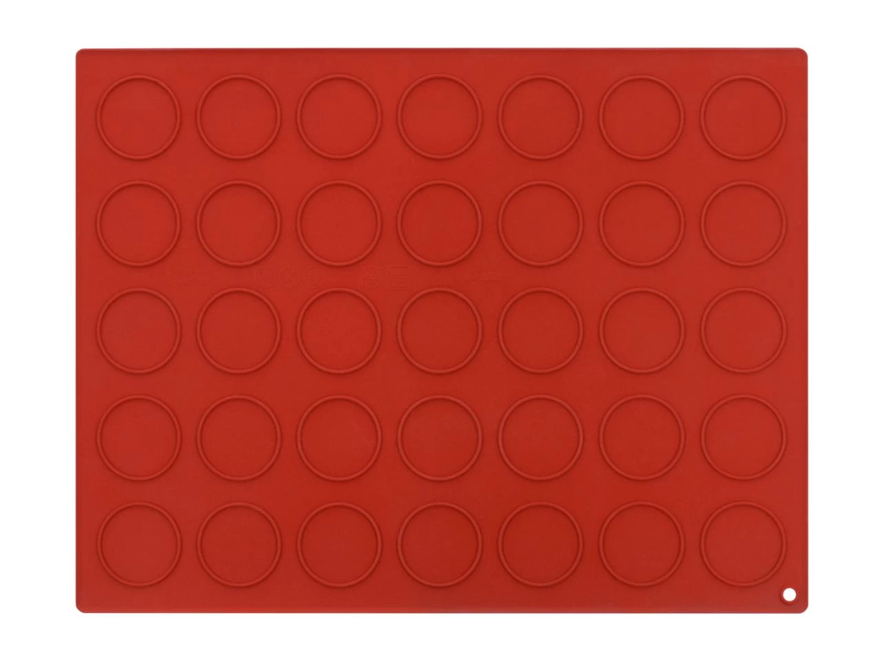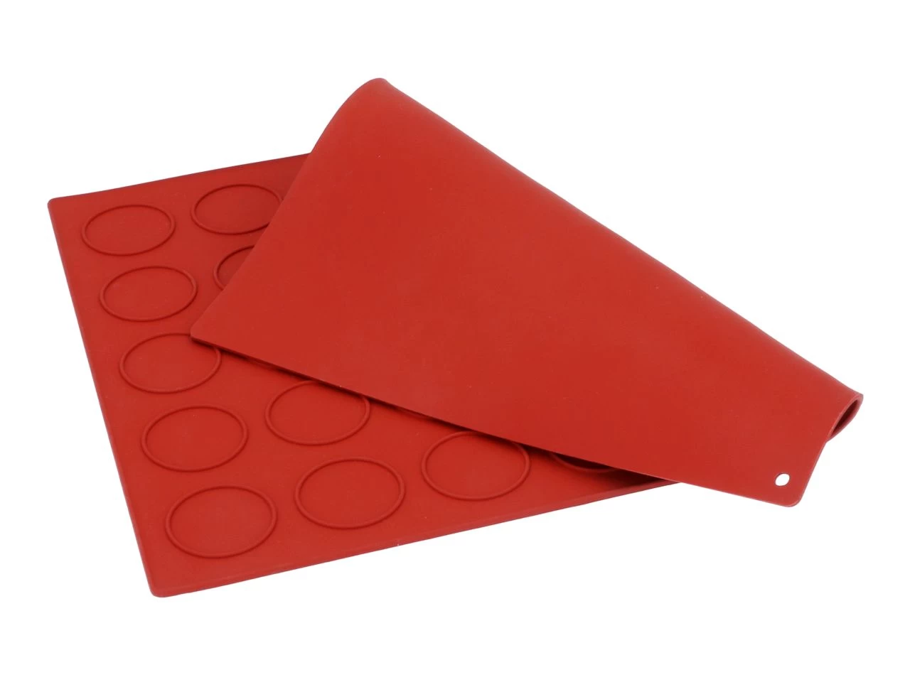 Die Silikon-Backmatte für Macarons hat eine hohe Antihaftwirkung, ist temperaturbeständig von –60 °C bis +230 °C, sehr langlebig, platzsparend zu verstauen und spülmaschinenfest.