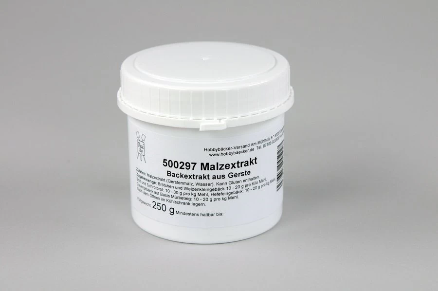 - Für Brot sollte eine Menge von 10 bis 30 Gramm Gersten Backextrakt je Kilogramm Mehl verwendet werden.