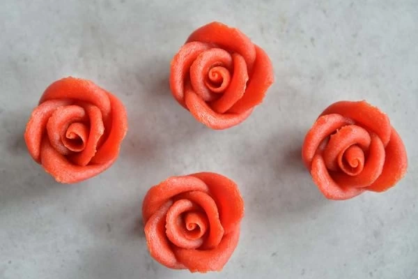Rote Rosen sind an Stil und Romantik nicht zu überbieten. Deshalb sind diese handgefertigten Marzipanblüten garantiert immer ein Renner, ob auf der Hochzeitstorte oder zu anderen Anlässen.
