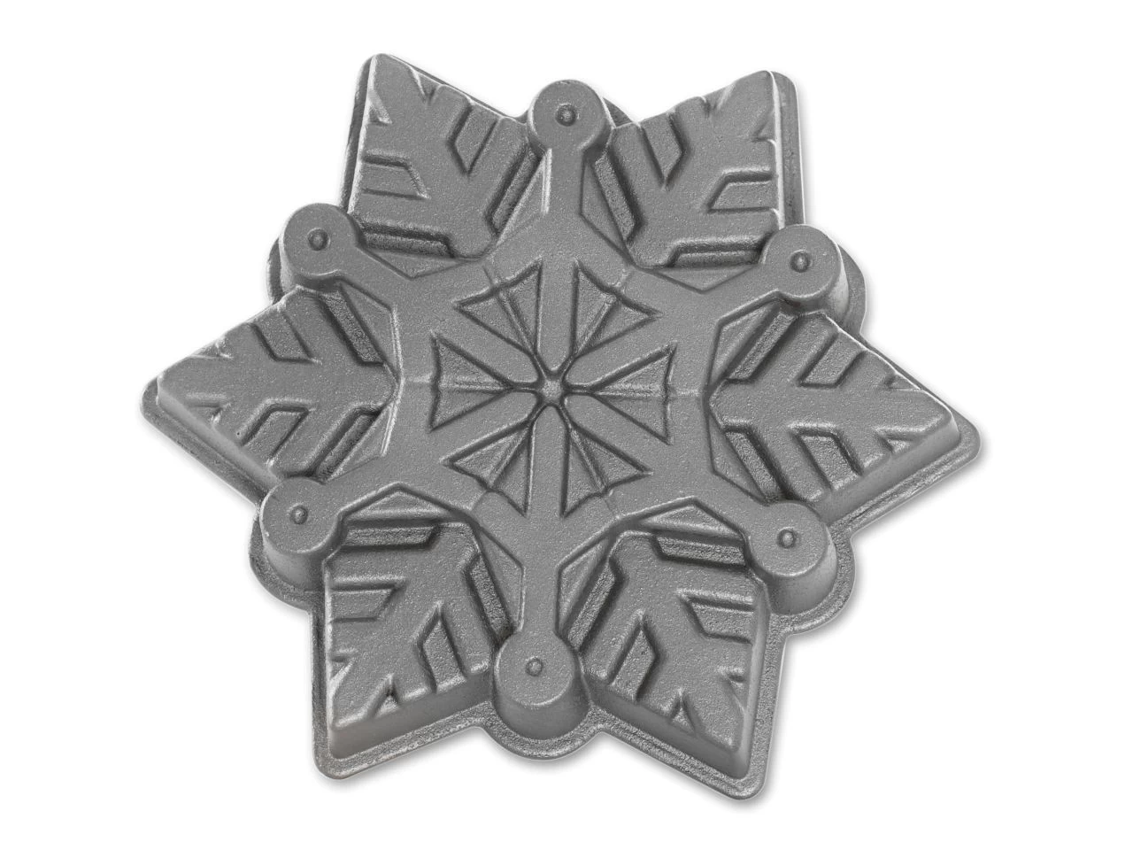Mit der silberfarbene Nordic Ware Aluguss-Backform Snowflake Pan holen Sie sich einen Profi aus einem Aluminiumguss ins Haus. Die extra schwere Kuchenform mit einem Durchmesser von 26,2 cm und einer Höhe von 5,5 cm hat ein Volumen von 1,4 Litern. Mit dieser originellen 3D-Backform aus Aluguss backen Sie einen Kuchen in Form eines zauberhaften Schneesterns.