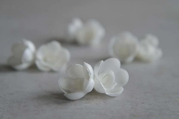 Veredeln Sie Ihre Kuchen und Torten mit diesen reinweißen aus Oblaten gefertigten Blüten. Auch auf Sahnetorten stabil.