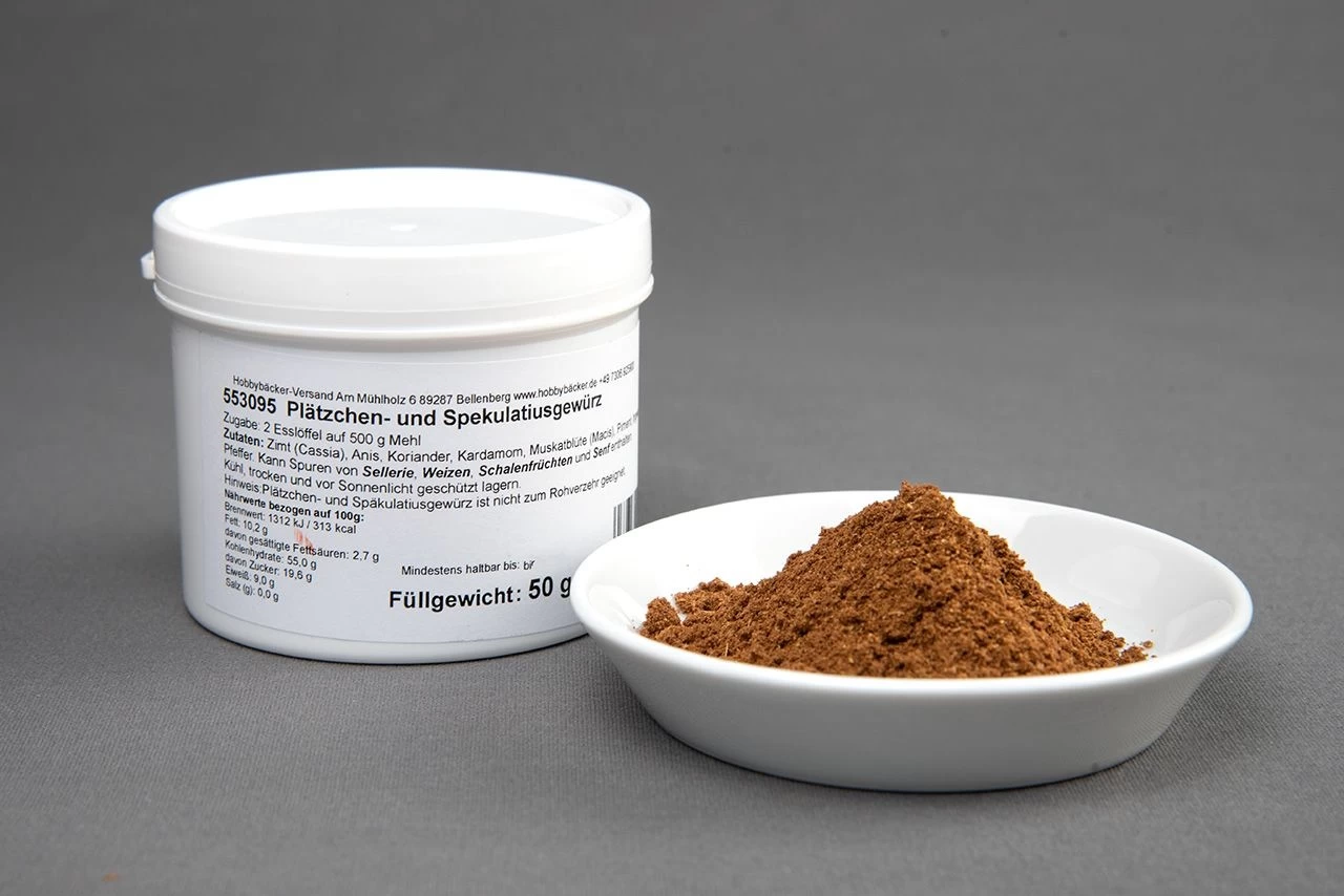 Spekulatiusgewürz ist eine unverzichtbare Zutat in der Weihnachtsbäckerei. Wenn auch Sie sich das ganze Jahr auf eine besinnliche Vorweihnachtszeit und das Backen von Plätzchen freuen, sollten Sie sich unser Spekulatiusgewürz kaufen. Es besteht aus Cassia Zimt, Anis, Koriander, Kardamom, Muskatblüte, Piment, Ingwer, Nelken und Pfeffer. Das einzigartige Gewürzbouquet verleiht Ihren Plätzchen sowie Ihrem Weihnachtsgebäck eine wunderbar aromatische Note. Mit unserem Spekulatiusgebäck schmeckt Ihr Gebäck herrlich weihnachtlich und Sie können selbst herkömmlichen Kuchen und Plätzchen einen Hauch von Weihnachten verpassen. Suchen Sie noch nach neuen leckeren Weihnachtsrezepten? Dann sollten Sie es mit unserem Rezept für einen essbaren Adventskranz oder unseren Weihnachts-Brownies versuchen. Natürlich finden Sie in unserem Hobbybäcker-Shop auch ein Rezept für klassische Spekulatius und viele weitere leckere Rezepte für die Weihnachtsbäckerei.