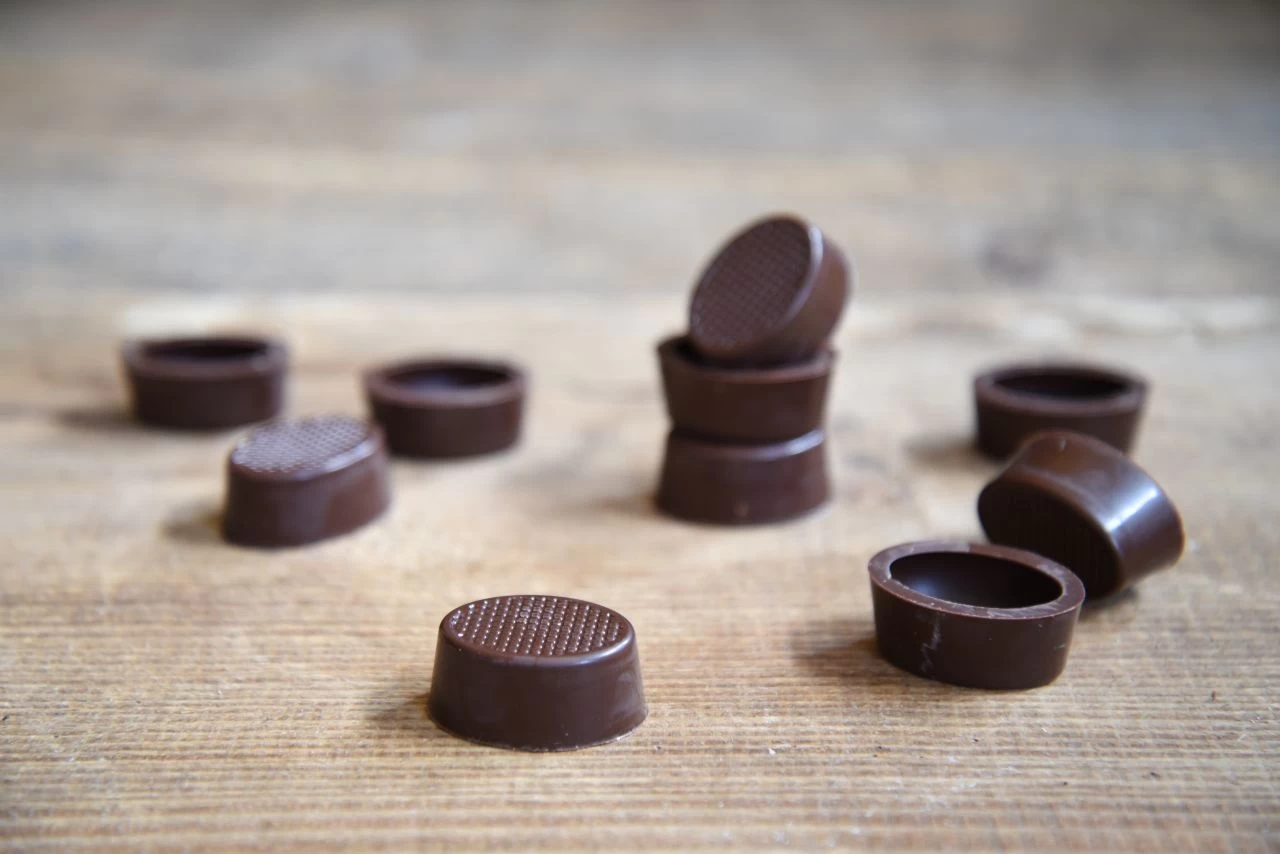 Feine Zartbitterschalen, die nur darauf warten, gefüllt zu werden. Schöner Hingucker und echter Gaumenschmaus zugleich.