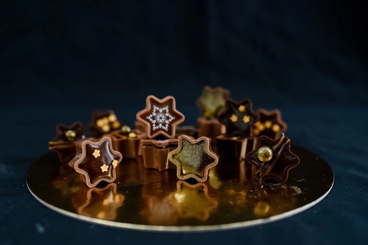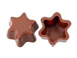 Die Vollmilch-Pralinenschalen in Sternform lassen sich offen oder mit Aufleger präsentieren. Fehlt nur noch Ihre Lieblings-Pralinenfüllung und der Sternentraum ist perfekt.