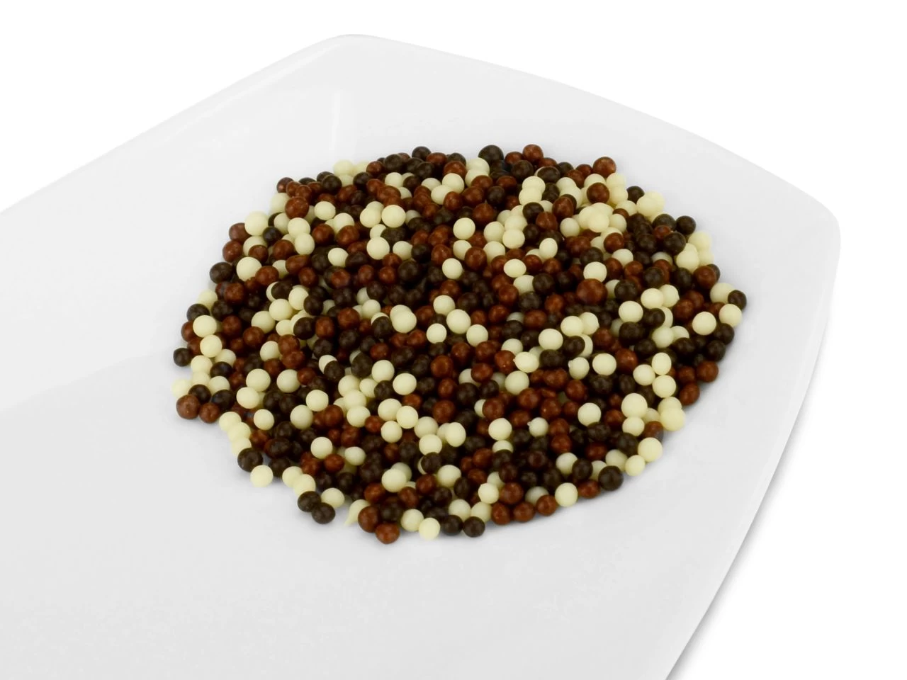 Verzieren Sie mit leckeren Schoko-Crunch-Pearls zu 60 g in Weiß, Vollmilch und Zartbitter Ihr Gebäck und Ihre Desserts. Die kleinen Knusper-Perlen bestehen aus einem Getreidekern und sind umhüllt mit Kakao in drei Schokoladenfarben.
