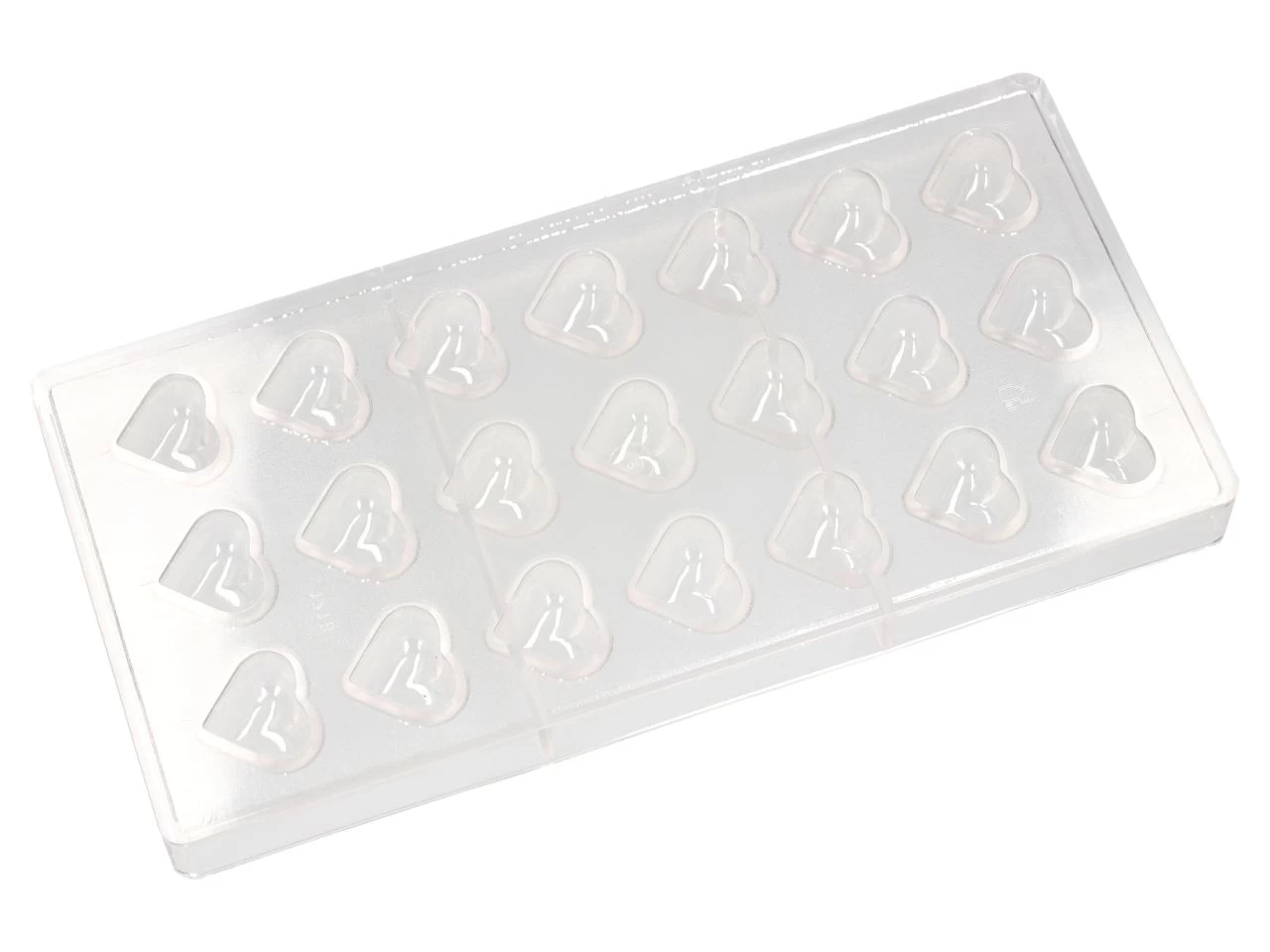 Der Kunststoff dieser Pralinenform besteht aus Polycarbonat und wurde für den dauerhaften Einsatz entwickelt. Die Profi-Pralinenform wird, falls nötig, ausschließlich in klarem, warmem Wasser gereinigt und ggf. vor dem nächsten Gebrauch mit etwas Watte poliert.