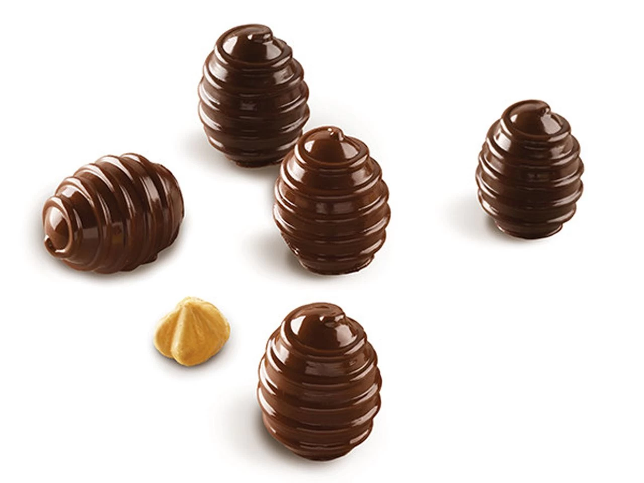 Kleine Süßigkeiten aus Schokolade welche Euch durch ihre originelle 3D Form überraschen werden! Der Schokolade sind dank Silikomart keine Grenzen mehr gesetzt: jede Vertiefung der Form verfügt über einen speziellen inneren Rand, welcher den Böden Eurer Zubereitungen eine leichte Rundung verleiht. Kleine Leckereien, raffiniert für den Gaumen und den Anblick!