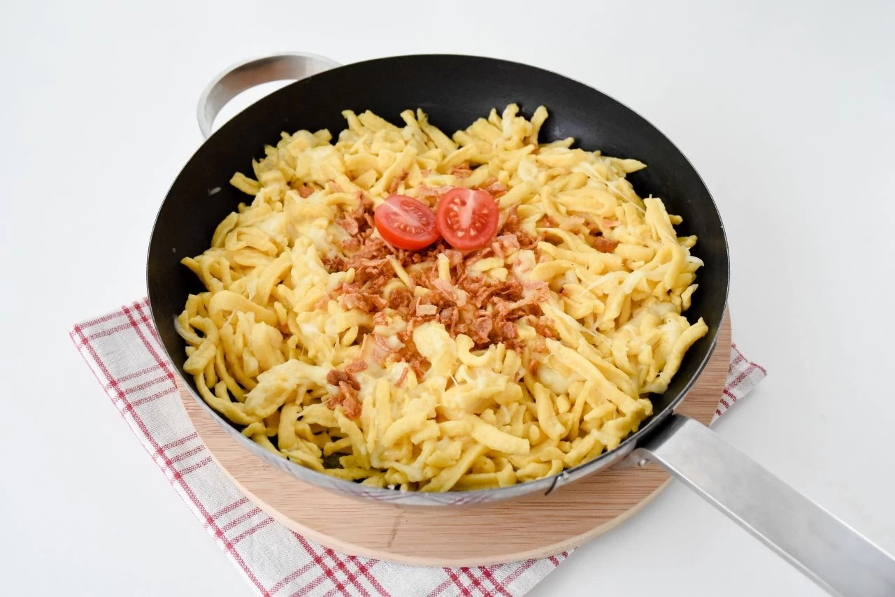Die Tradition der Spätzleherstellung geht bis ins 18. Jahrhundert zurück und hat bis heute noch eine große Bedeutung in der schwäbischen Küche. Traditionell werden die besonderen Teignudeln von Hand geschabt und durch ihre Ähnlichkeit mit kleinen Knöpfen auch „Knöpfle“ genannt. Spricht man hingegen von Spätzle, meint man oftmals die längliche Variante, bei der der Teig durch eine Kartoffelpresse in das kochende Wasser gegeben wird.