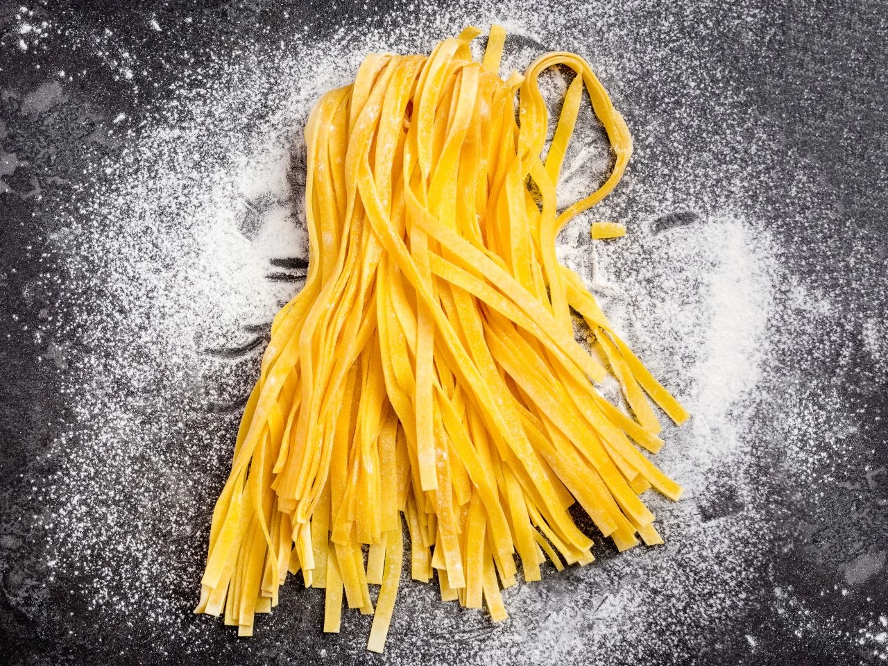 Fügen Sie einfach 175 ml Wasser zur Nudelteig-Mischung mit 500 g hinzu und stellen Sie aus dem Knetteig nach einer Ruhezeit zwischen 30 und 60 Minuten in Frischhaltefolie vier Portionen frische Pasta her.