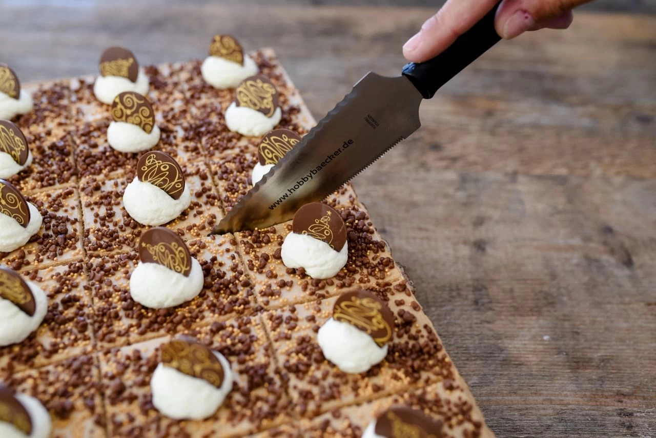 Dieses Tortenmesser ist wirklich universell einsetzbar. Eine Seite besitzt einen scharfen Sägeschliff, die andere ein gleichmäßiges Wellenprofil. Wem das noch nicht reicht: Als Tortenheber lässt es sich auch nutzen! Klinge aus Edelstahl.