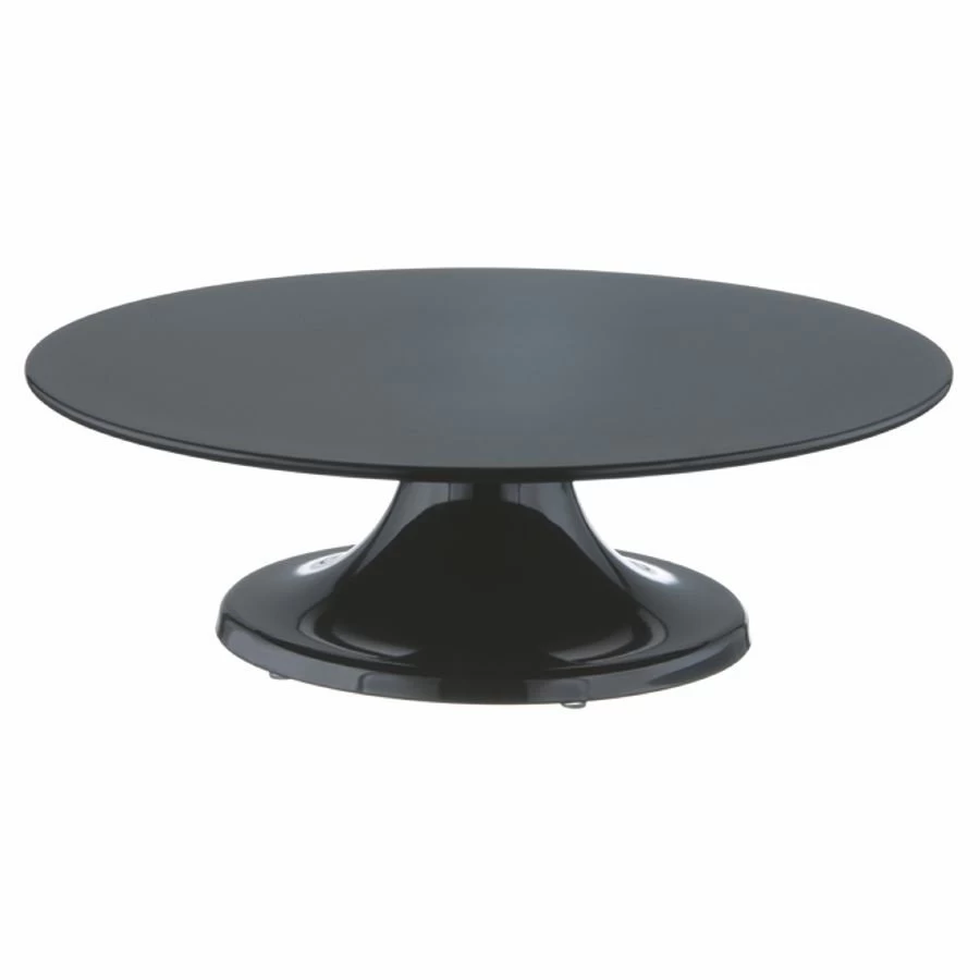 Präsentieren Sie Ihren Kuchen auf einer 10 cm hohen, schnitt- und bruchfesten Tortenplatte aus schwarzem Melamin. Der Anti-Rutsch-Fuß verhindert ein Rutschen der Platte beim Drehen.