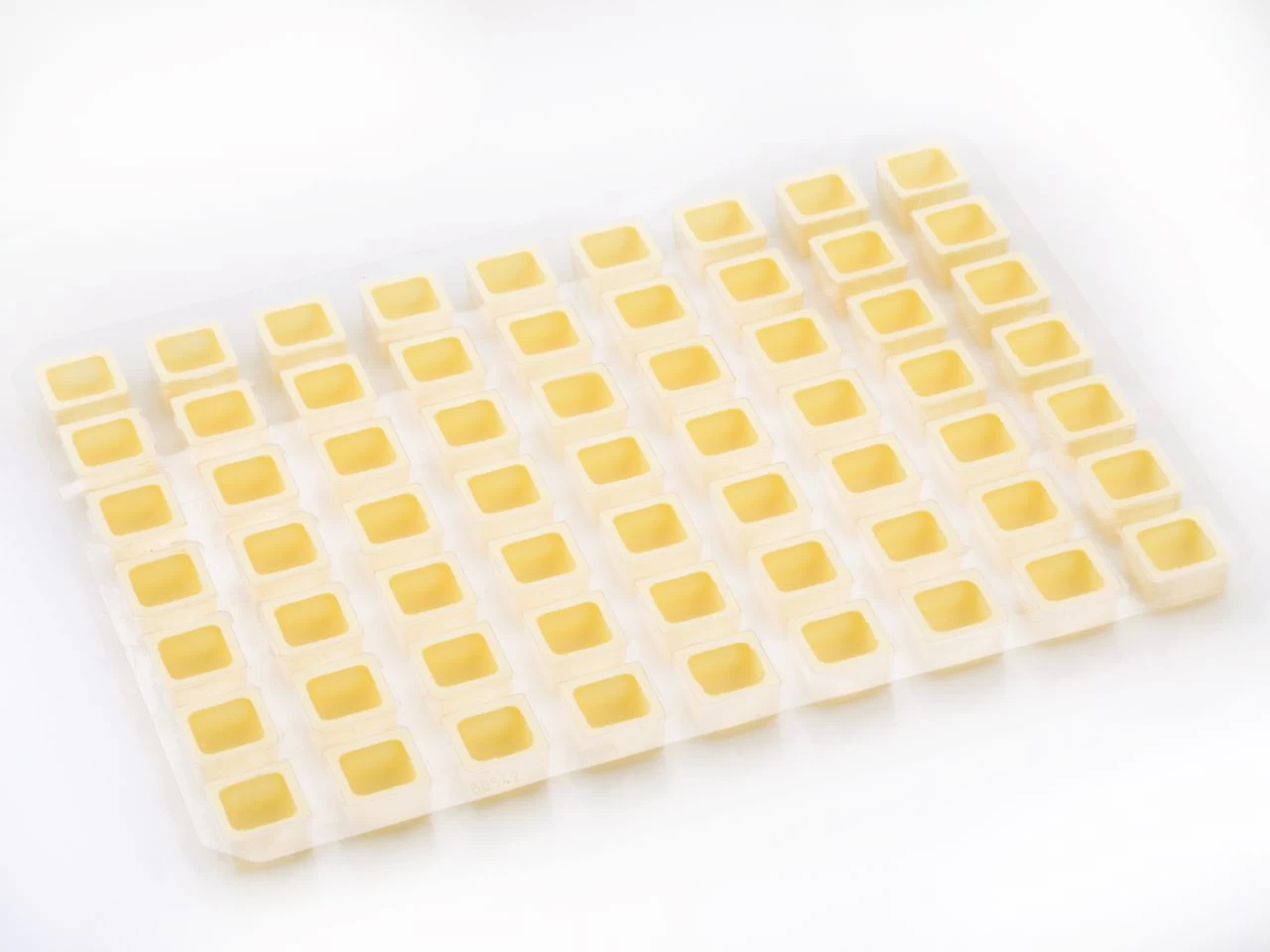 „Backen“ Sie sich doch einfach mal weiße Pralinen. Unsere Viereckschalen aus weißer Schokolade eignen sich dafür perfekt. Einfach füllen, verschließen und fertig ist der zarte Hochgenuss.