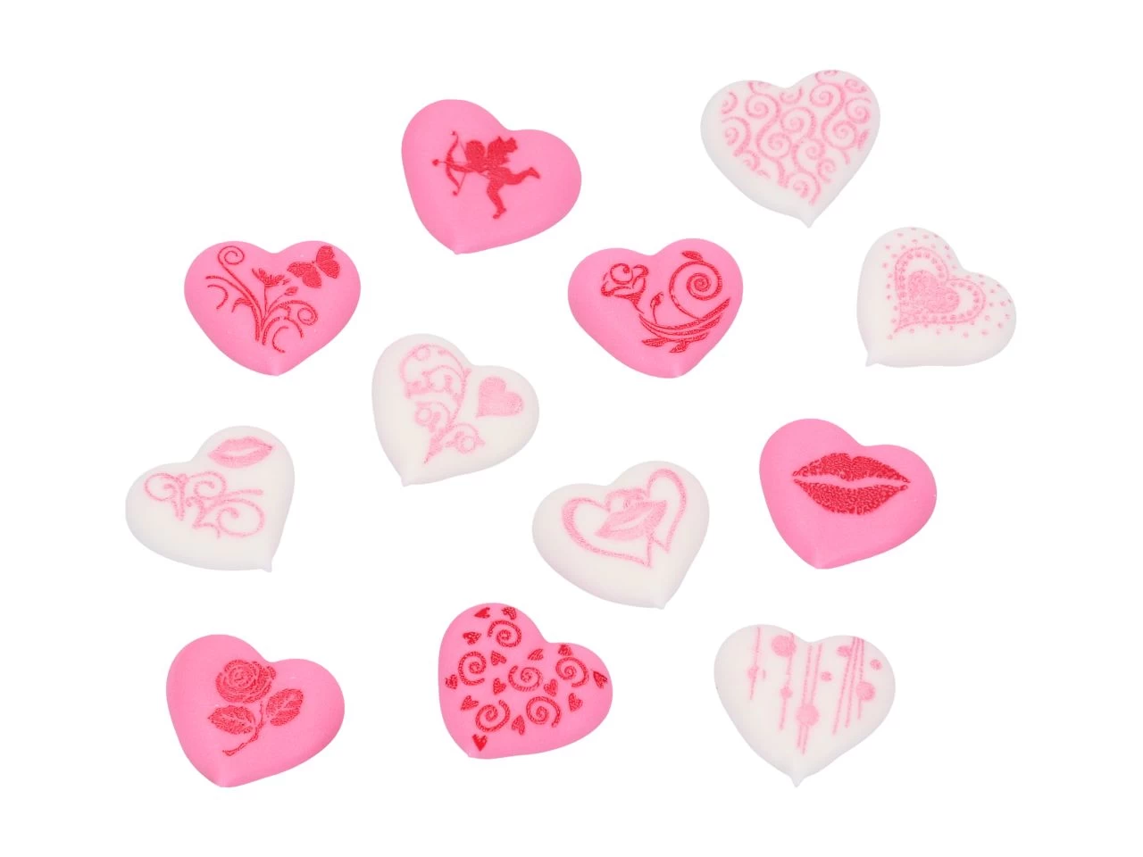 Produktinformationen „Zuckerdekor Motivherzen, 12 Designs, Pink & Weiß, 24 Stück á 27 x 25 x 5,5 mm“